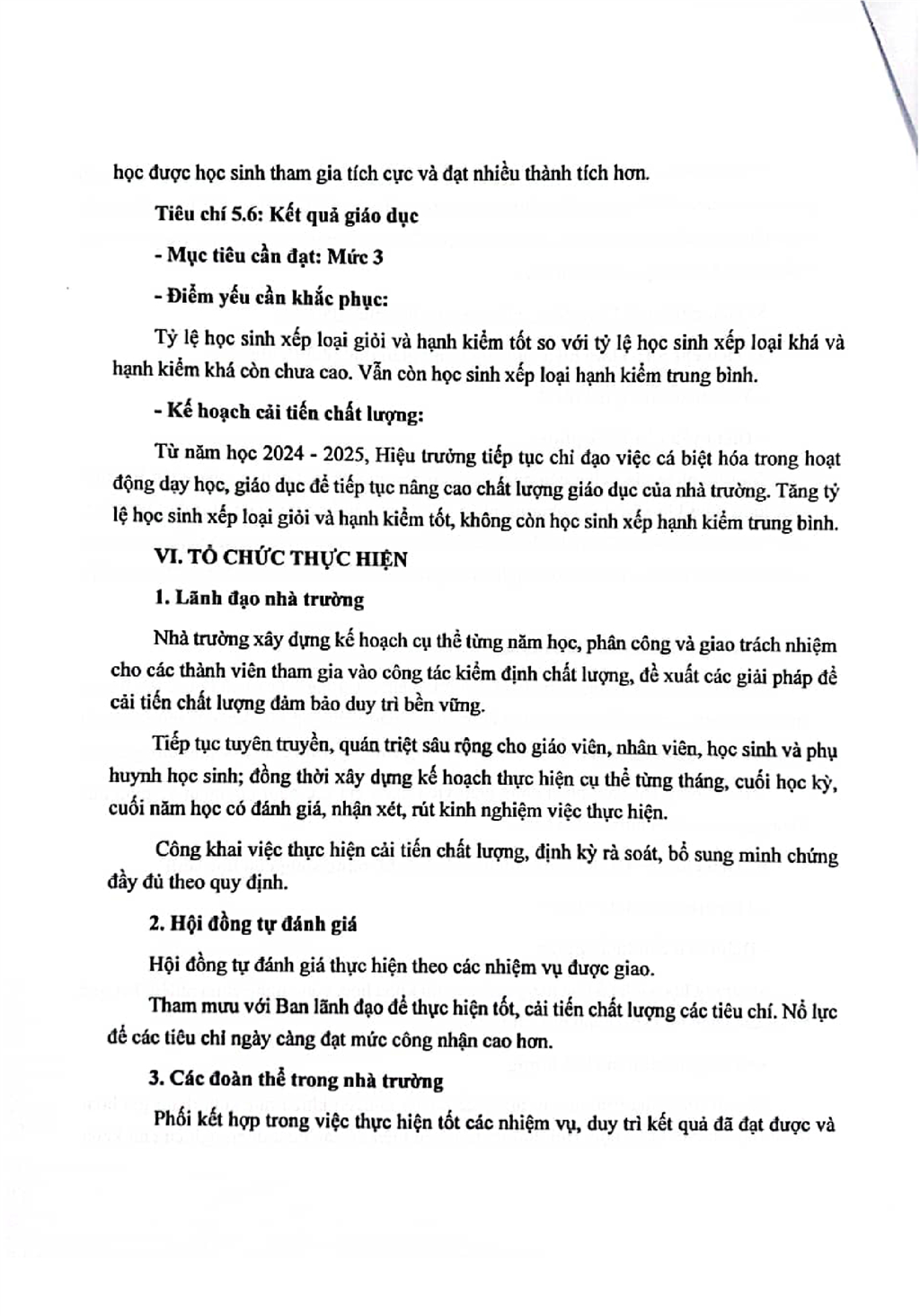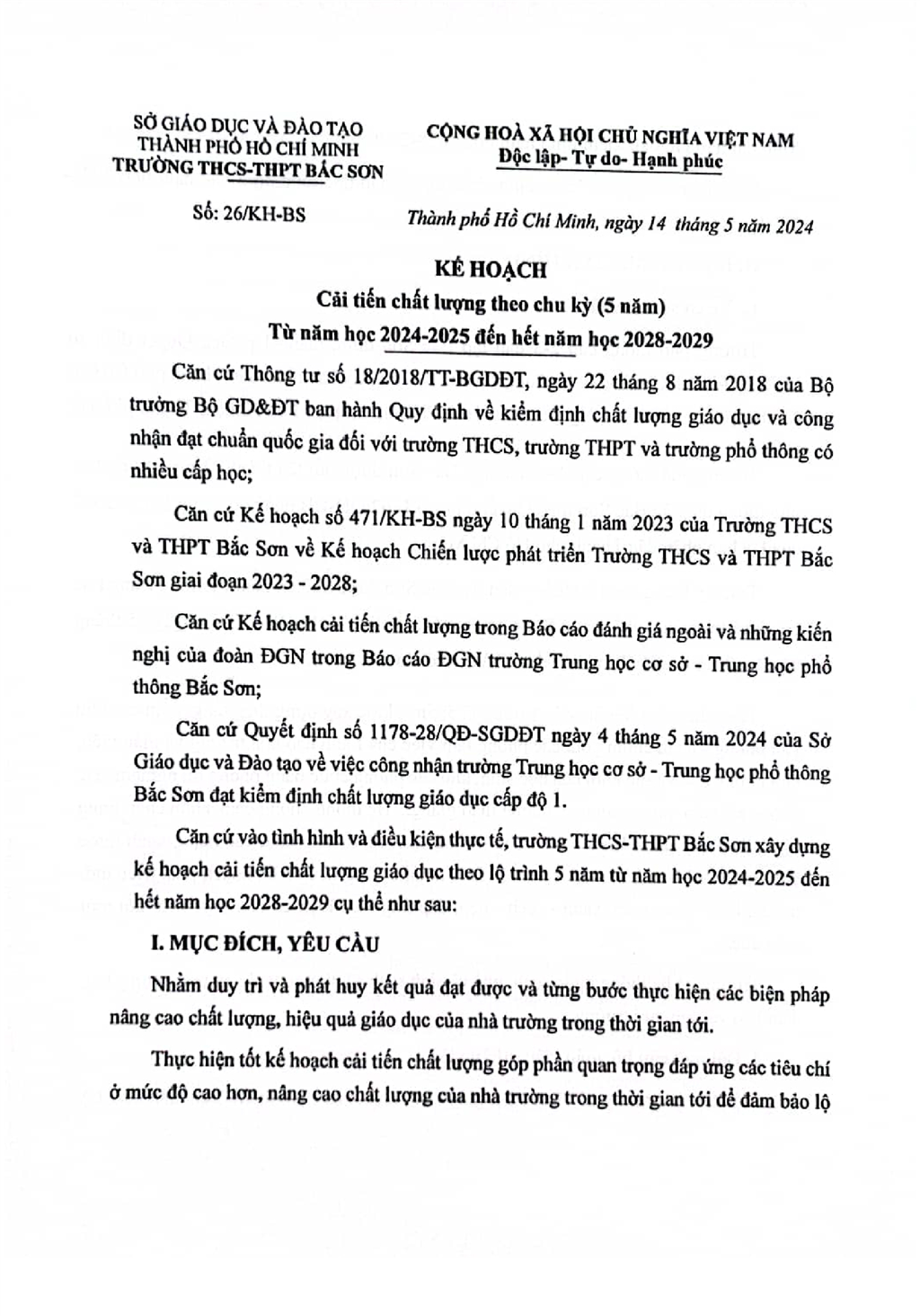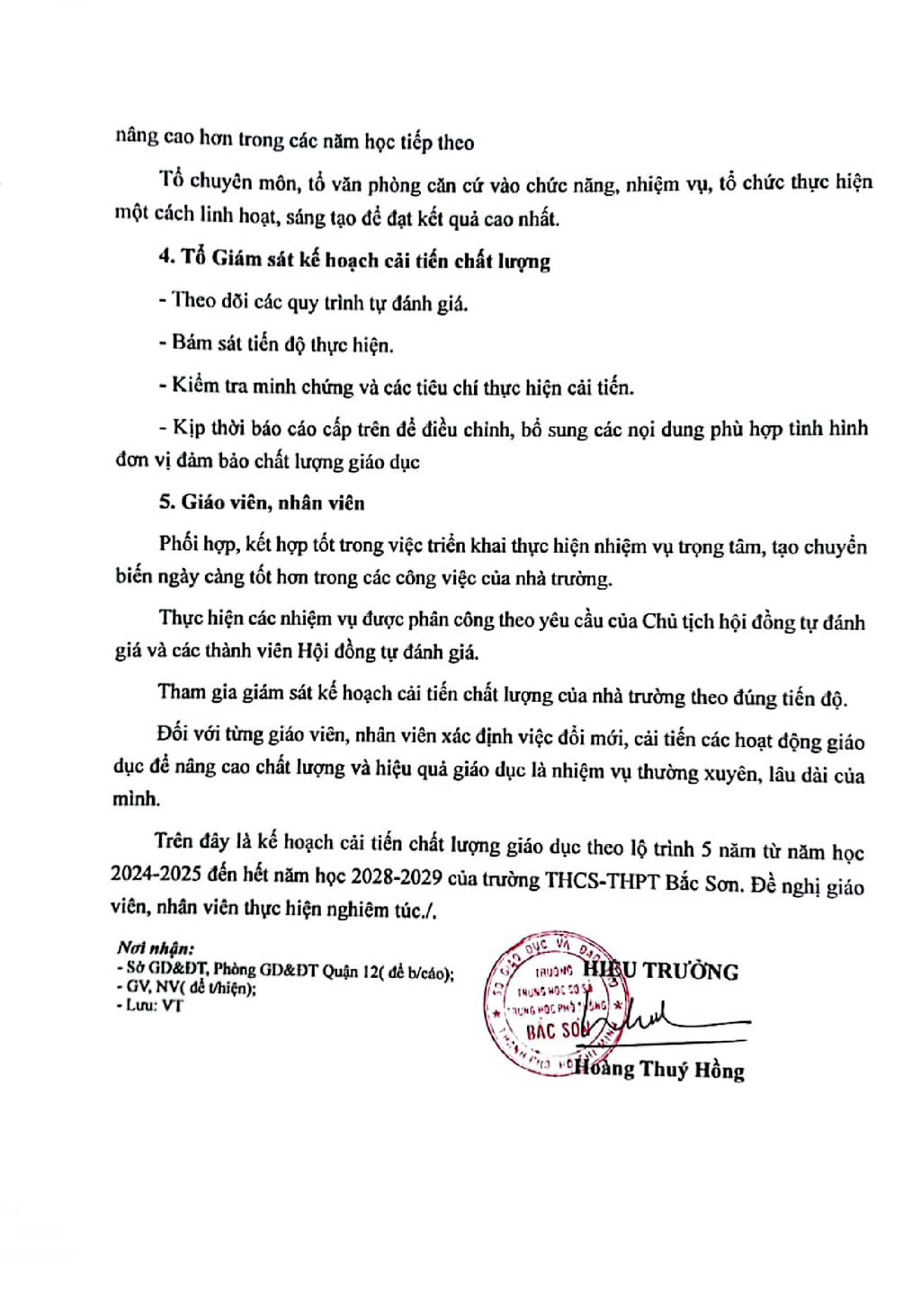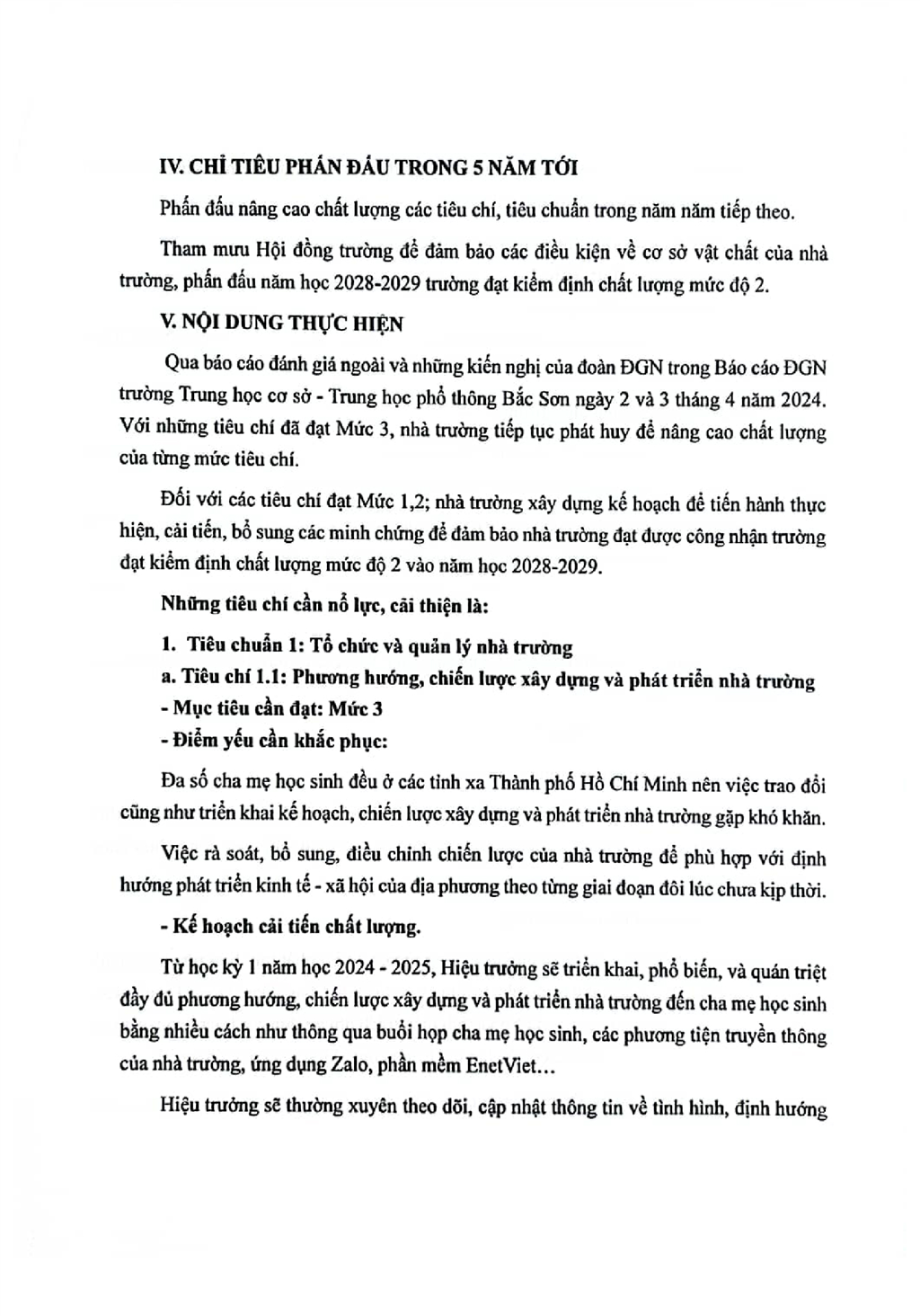 Kế hoạch cải tiến chất lượng theo chù kỳ 5 năm từ năm học 2024-2025 đến hết năm học 2028-2029