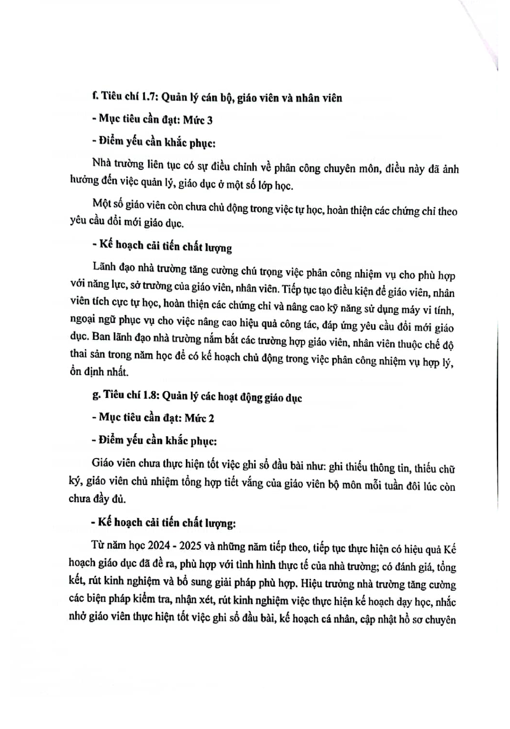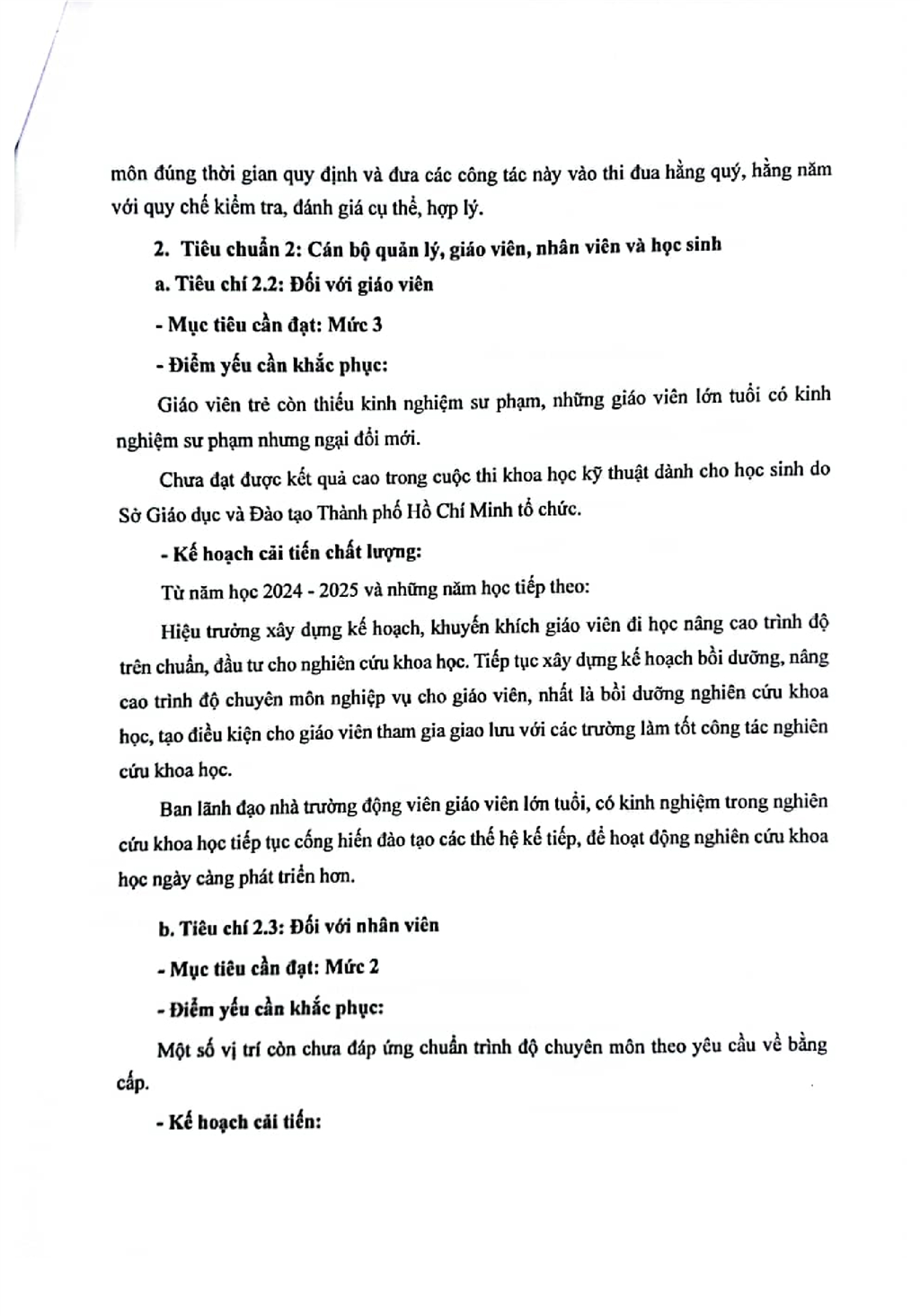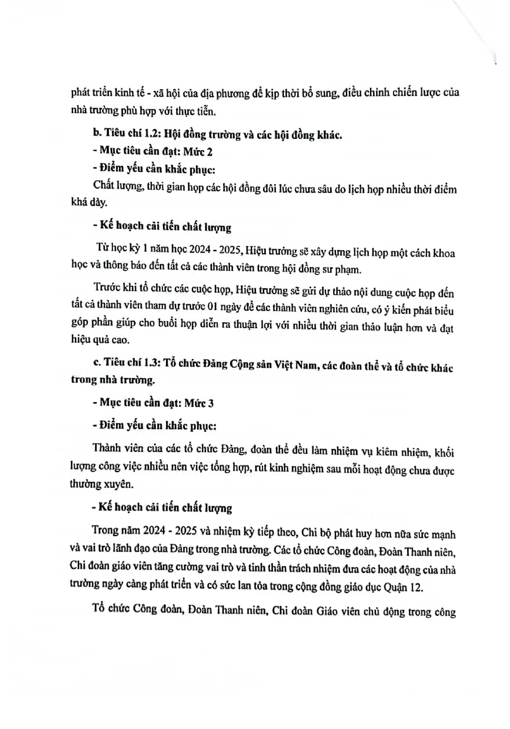 Kế hoạch cải tiến chất lượng theo chù kỳ 5 năm từ năm học 2024-2025 đến hết năm học 2028-2029