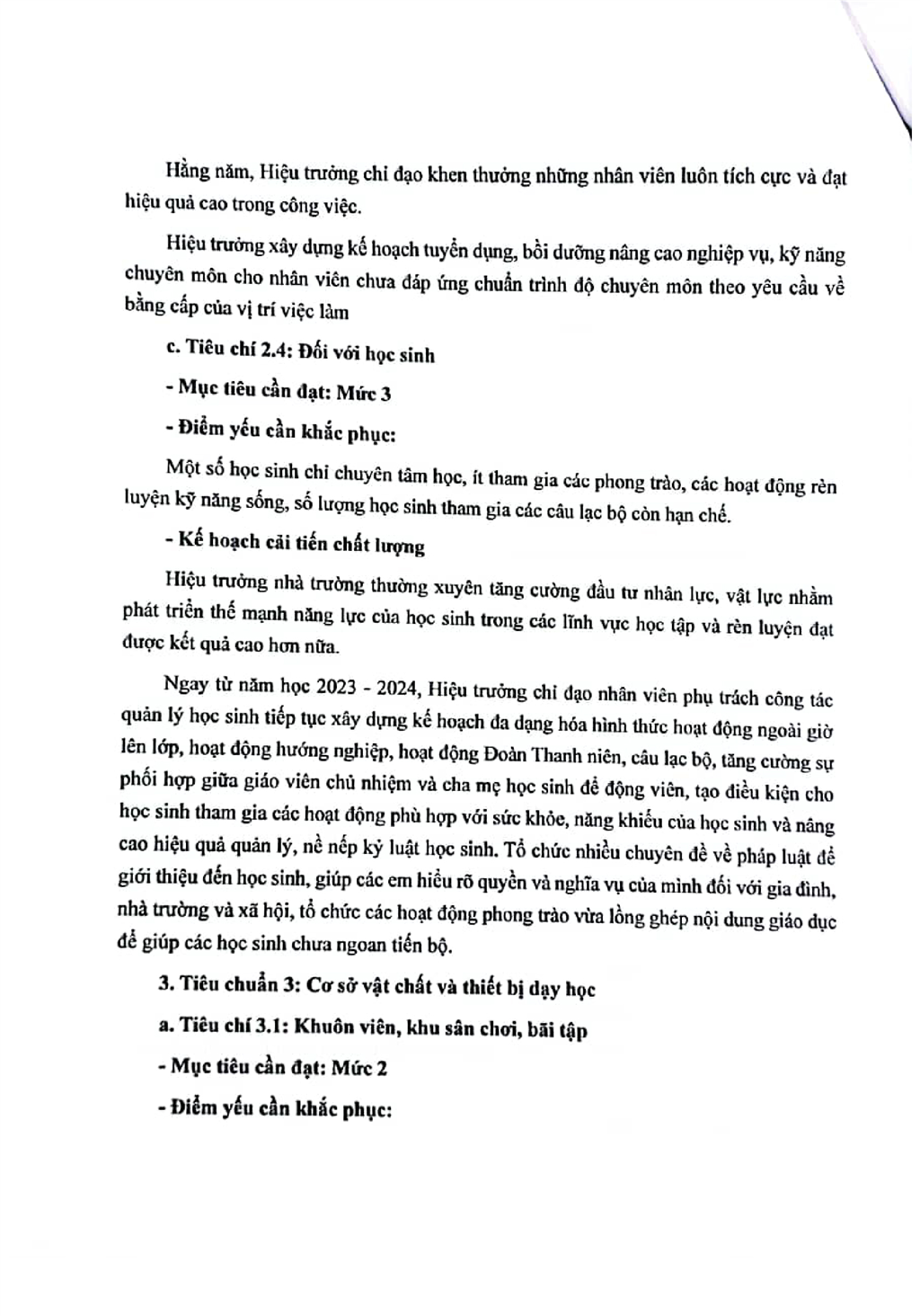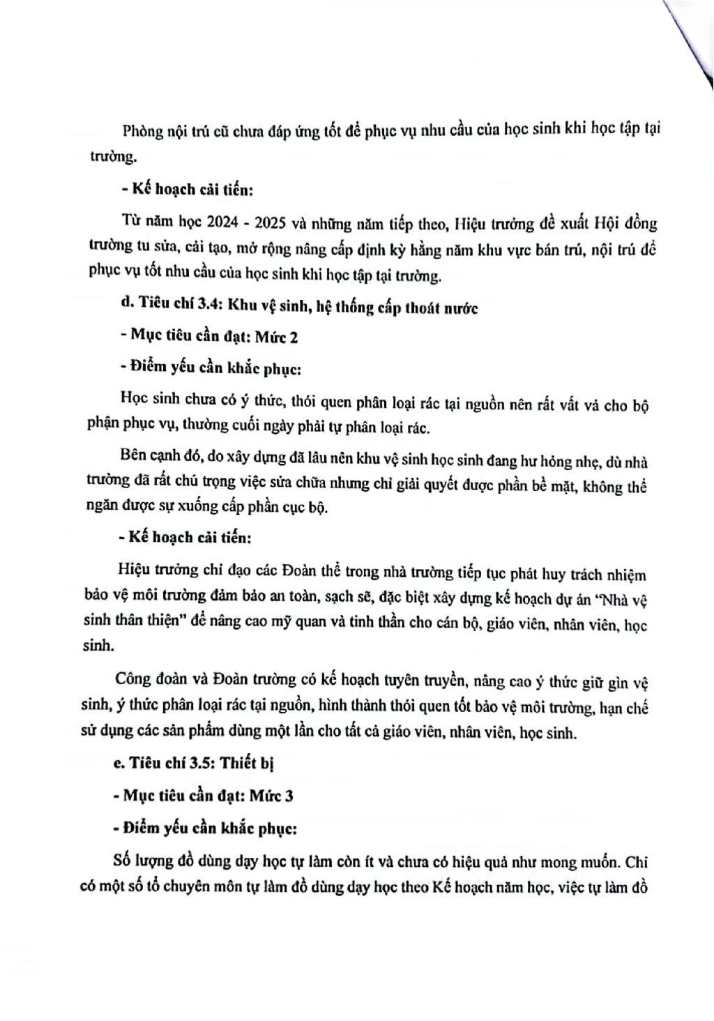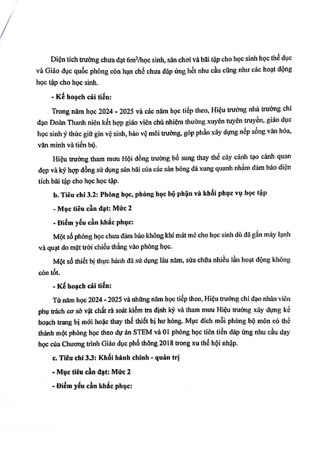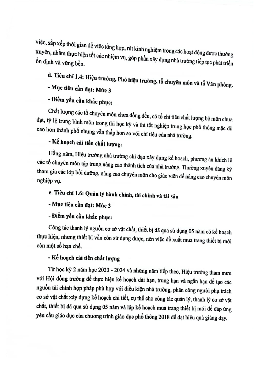 Kế hoạch cải tiến chất lượng theo chù kỳ 5 năm từ năm học 2024-2025 đến hết năm học 2028-2029