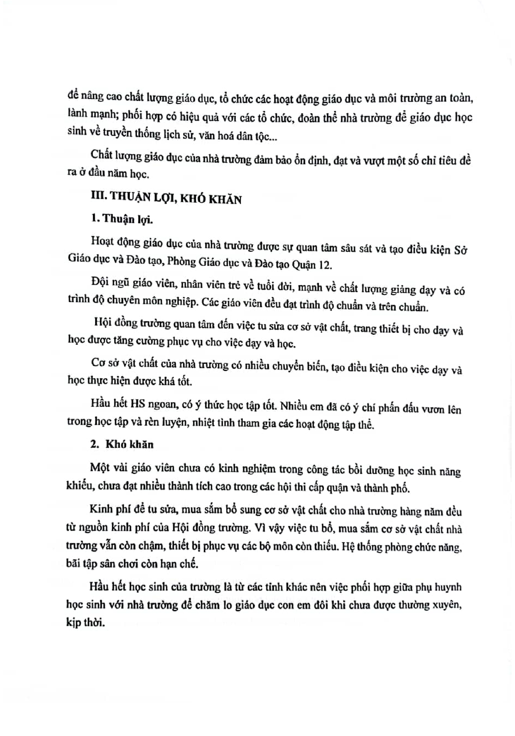 Báo cáo tự đánh giá chất lượng giáo dục học kì I năm học 2025-2026